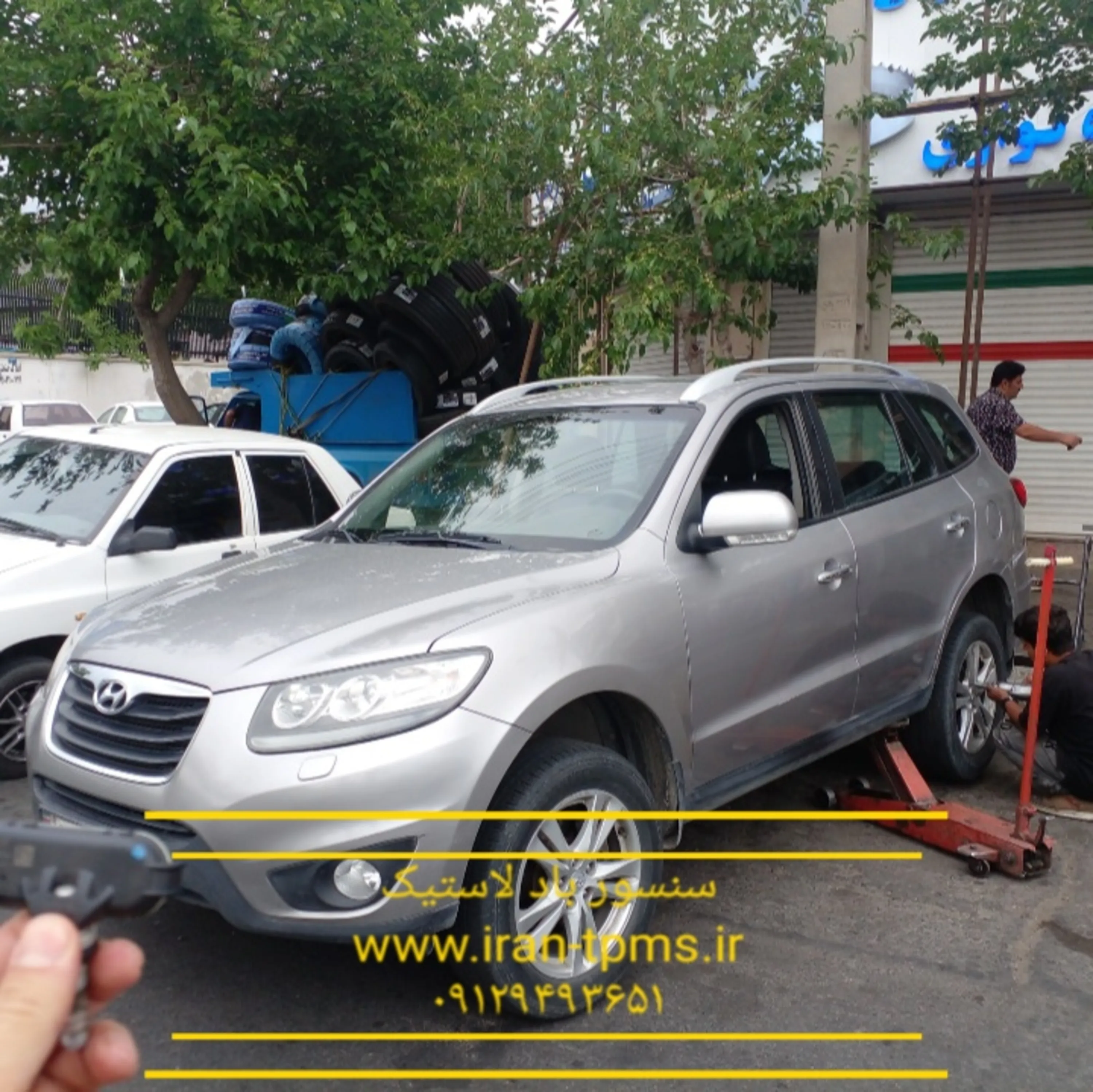 Hyundai Santa Fe has TPMS option. Tire pressure are monitored using these Tire sensors inside each rim . All kinds of TPMS services for Hyundai Santa Fe are perfomed in our shop. For more information about Hyundai Santa Fe TPMS: