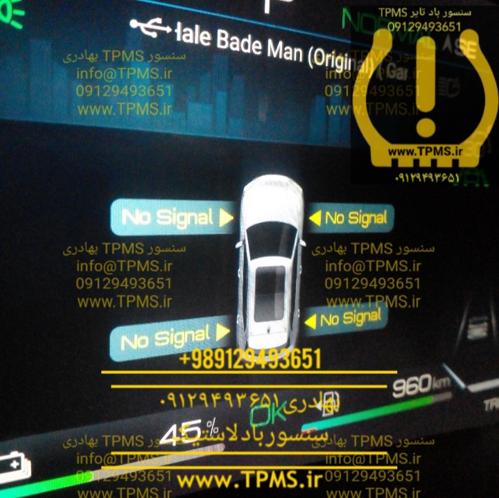 در صورتیکه سنسور TPMS بی وای دی سانگ پلاس خراب شود، عدم نمایش میزان باد و دمای لاستیکها در پشت آمپر به همراه نوشته No Signal در کنار چرخ مربوطه خواهید داشت. در شکل زیر خطای No Signal برای هر چهار چرخ نمایش داده شده است که به معنای خرابی سیستم مانیتورینگ فشار باد تایرها در بی وای دی سانگ پلاس می باشد.