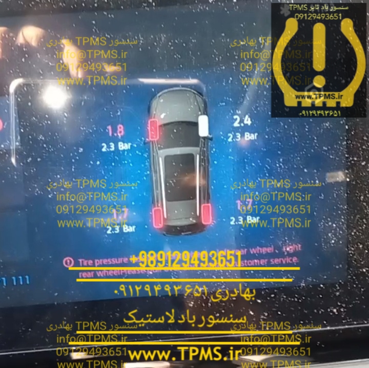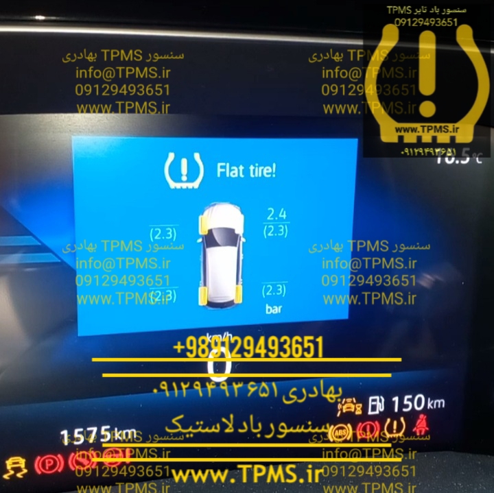 در صورت کم باد بودن هر یک از لاستیکهای جتا خطای TPMS در پشت آمپر و نیز در مانیتور وسط ظاهر می گردد. به تصاویر زیر توجه نمایید: