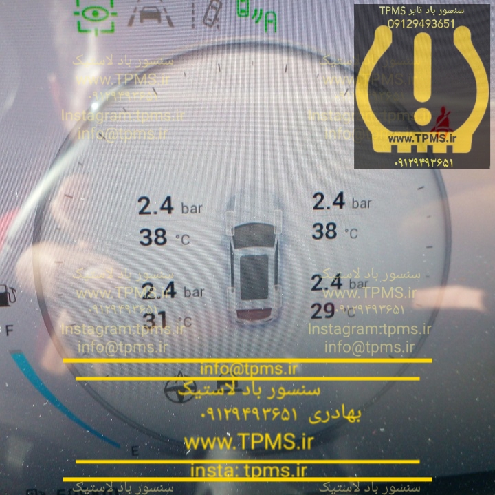 در حالت نرمال و یا پس از انجام تعمیرات و تنظیمات تخصصی TPMS، پشت آمپر باید به صورت شکل زیر باشد.