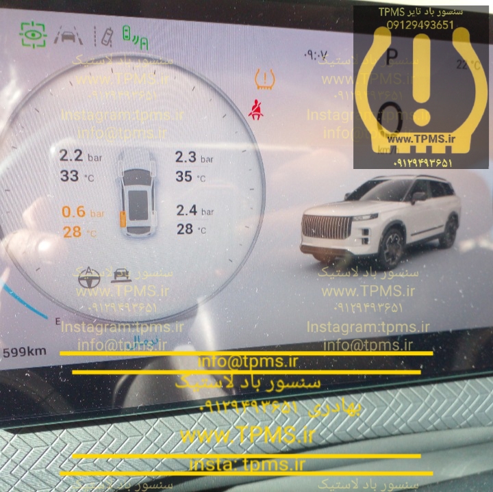 خطای TPMS لوکانو L7 در صورت کم باد شدن یا پنچری به صورت شکل زیر می باشد: