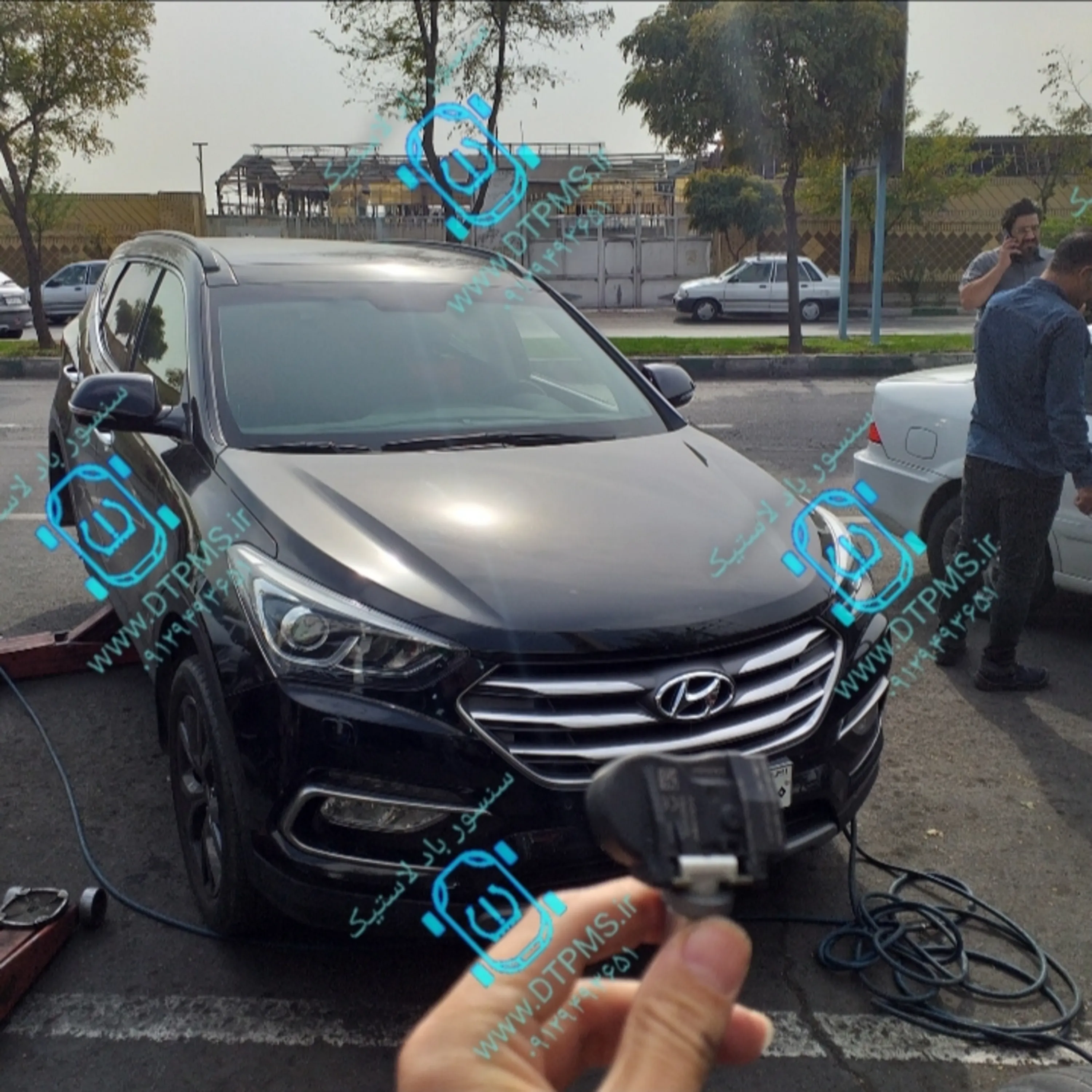 Hyundai Santa Fe has TPMS option. Tire pressure are monitored using these Tire sensors inside each rim . All kinds of TPMS services for Hyundai Santa Fe are perfomed in our shop. For more information about Hyundai Santa Fe TPMS: