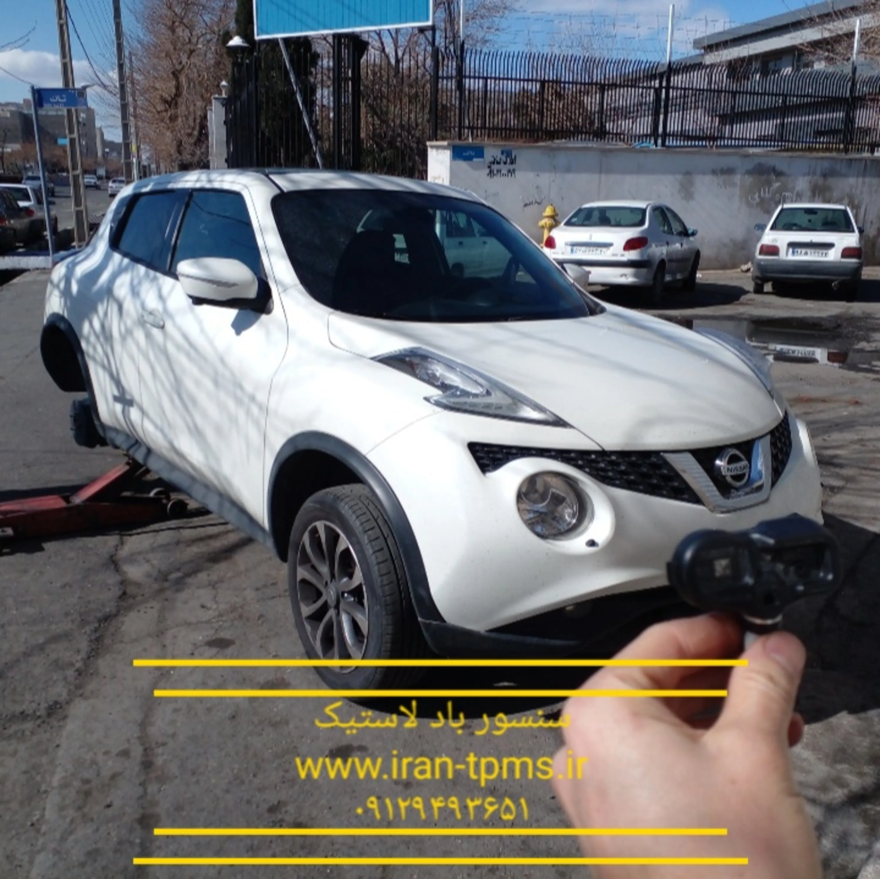 نیسان جوک دارای 4 عدد سنسور باد تایر میباشد. در صورت کم باد شدن هر یک از لاستیکها خطای پشت آمپر روشن میگردد. در صورتیکه با تنظیم باد چرخها، خطای سنسور باد نیسان جوک خاموش نشد، یکی از سنسورها معیوب میباشد.