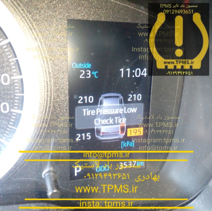 در مجموعه ما کلیه خدمات تعویض و تعمیر سنسور TPMS تویوتا لوین انجام میگردد. پس از انجام کلیه تنظیمات مربوط به سنسور باد لاستیک تویوتا لوین، پشت آمپر به صورت شکل زیر و بدون خطا قابل مشاهده است: