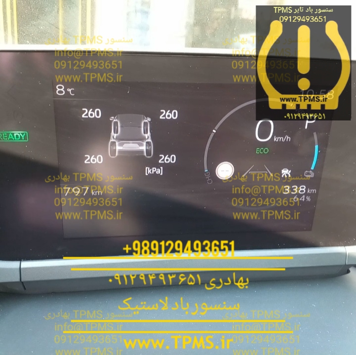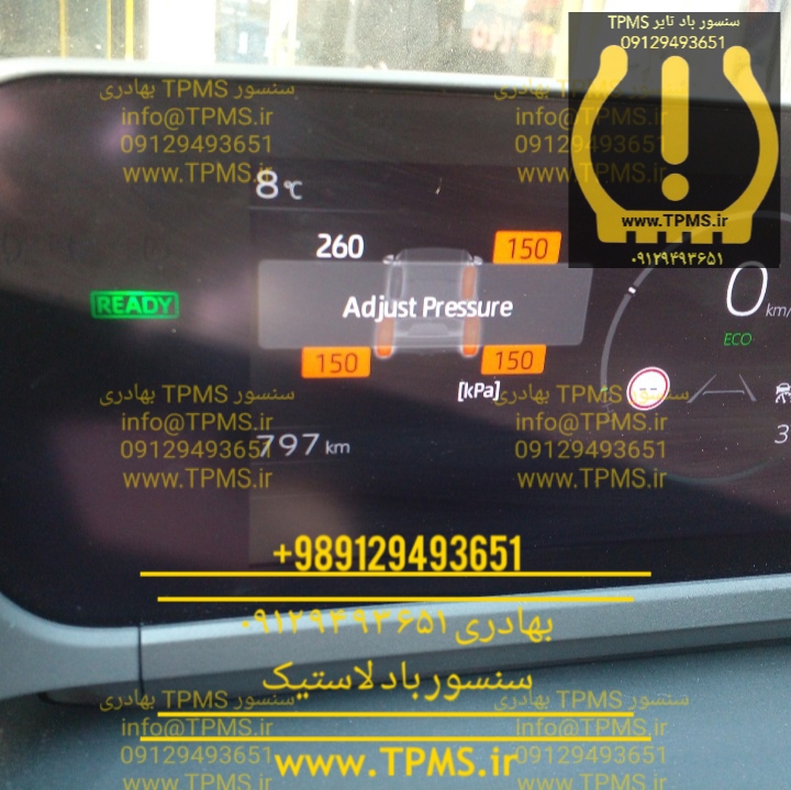 در اینگونه موارد با تنظیم باد مناسب چرخها، خطای TPMS از پشت آمپر از بین می رود و به صورت شکل زیر خواهد شد: