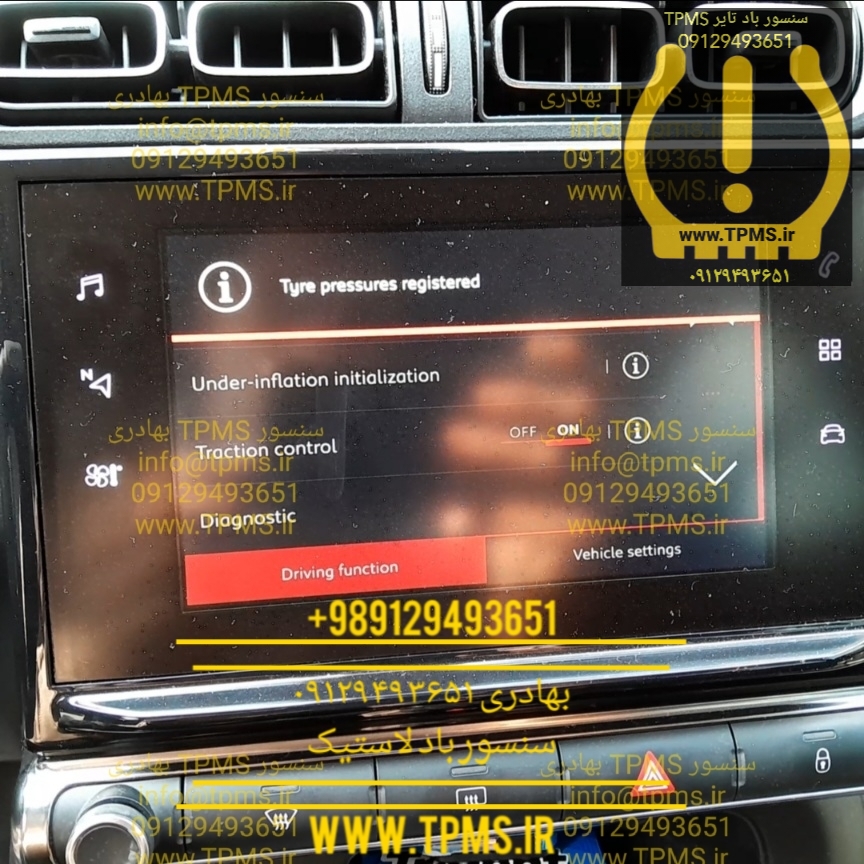 در شکل زیر خطای کم باد بودن و یا هشدار TPMS در سیتروئن C3 نمایش داده شده است. خطای زردرنگ نعل اسبی شکل نمایانگر اختلال در سیستم مانیتورینگ فشار باد تایرها می باشد.
