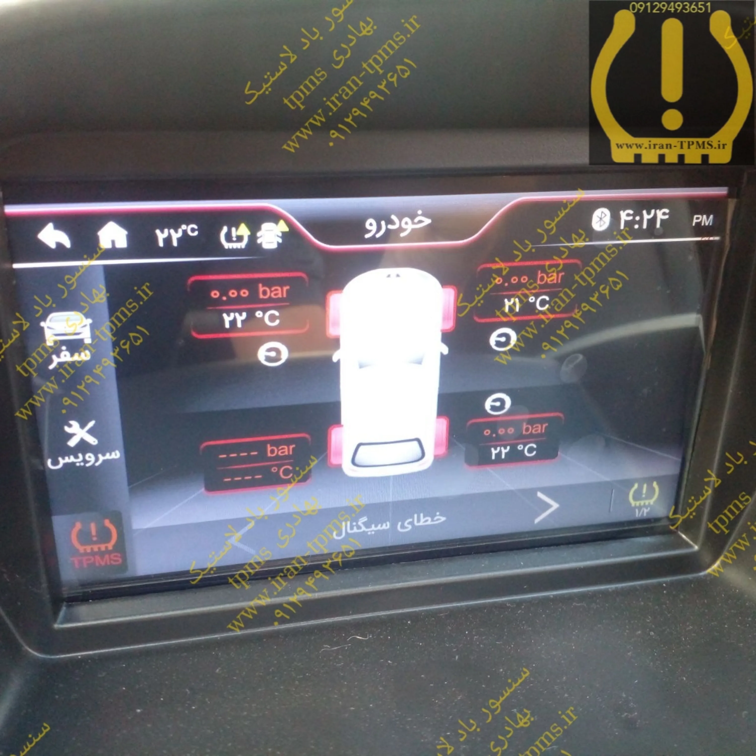 درصورتیکه که خطای سنسور باد تایر پژو 207 به صورت شکل زیر ظاهر گردید. به معنای خرابی سنسور TPMS پژو 207 میباشد.